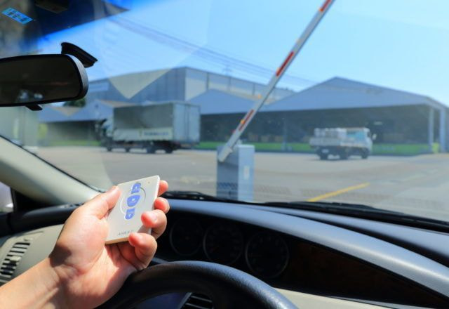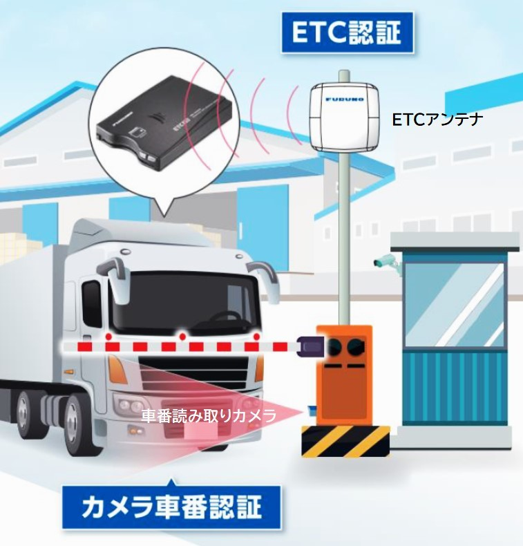 物流センターや工場・社員駐車場、商業施設搬入エリアなど、車両の入退管理をサポートするサービスです。ETC認証と車番認証のハイブリット識別により入退時の混雑を緩和します。